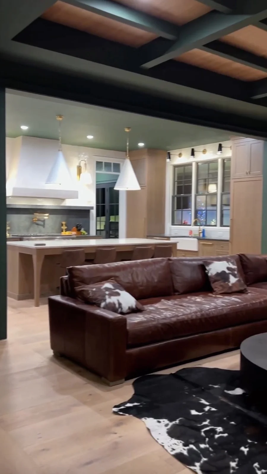 The layout is fully open-concept—kitchen flowing straight into the living area—because this is a house meant for people, not just photos. Friends, touring crew, family, all moving through the same space.