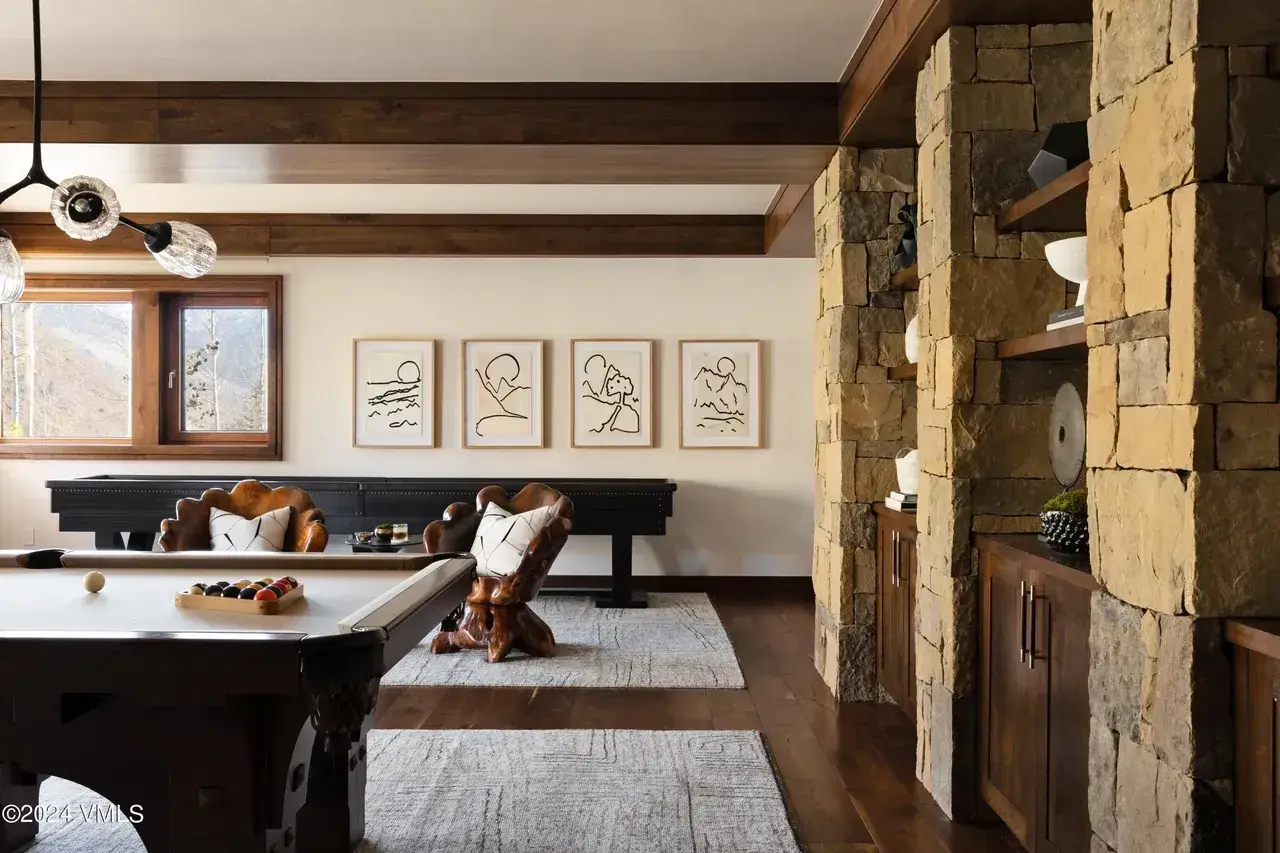 Despite the size of the home, the design avoids feeling formal. Living areas are arranged for everyday use rather than presentation. The atmosphere is closer to a high-end mountain lodge than a traditional celebrity mansion.