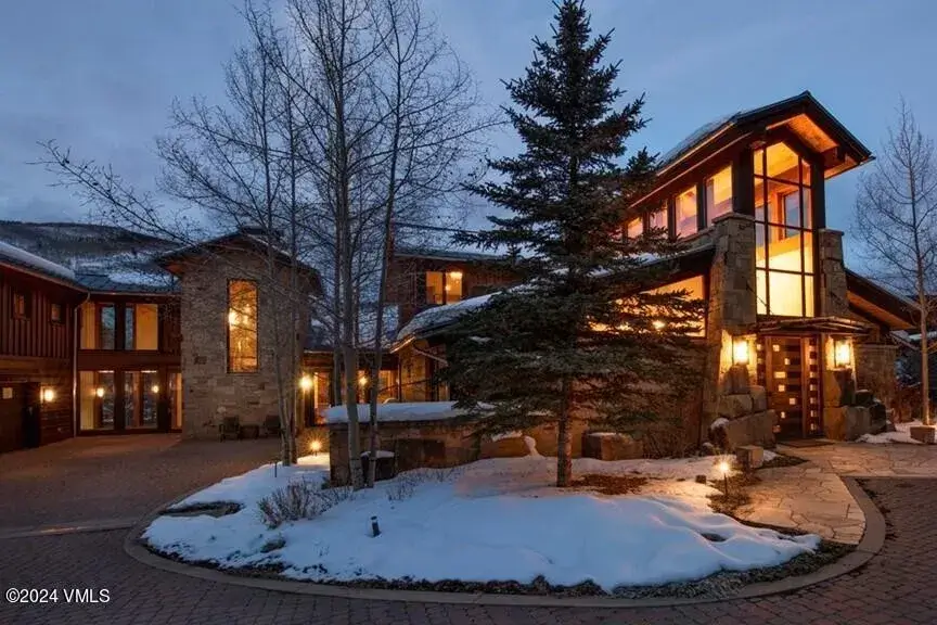 The mansion sits in one of Vail’s most exclusive hillside residential areas, positioned directly above the ski resort. From the property, the terrain drops away into sweeping mountain views, with forest, rock, and snow forming the dominant visual landscape.