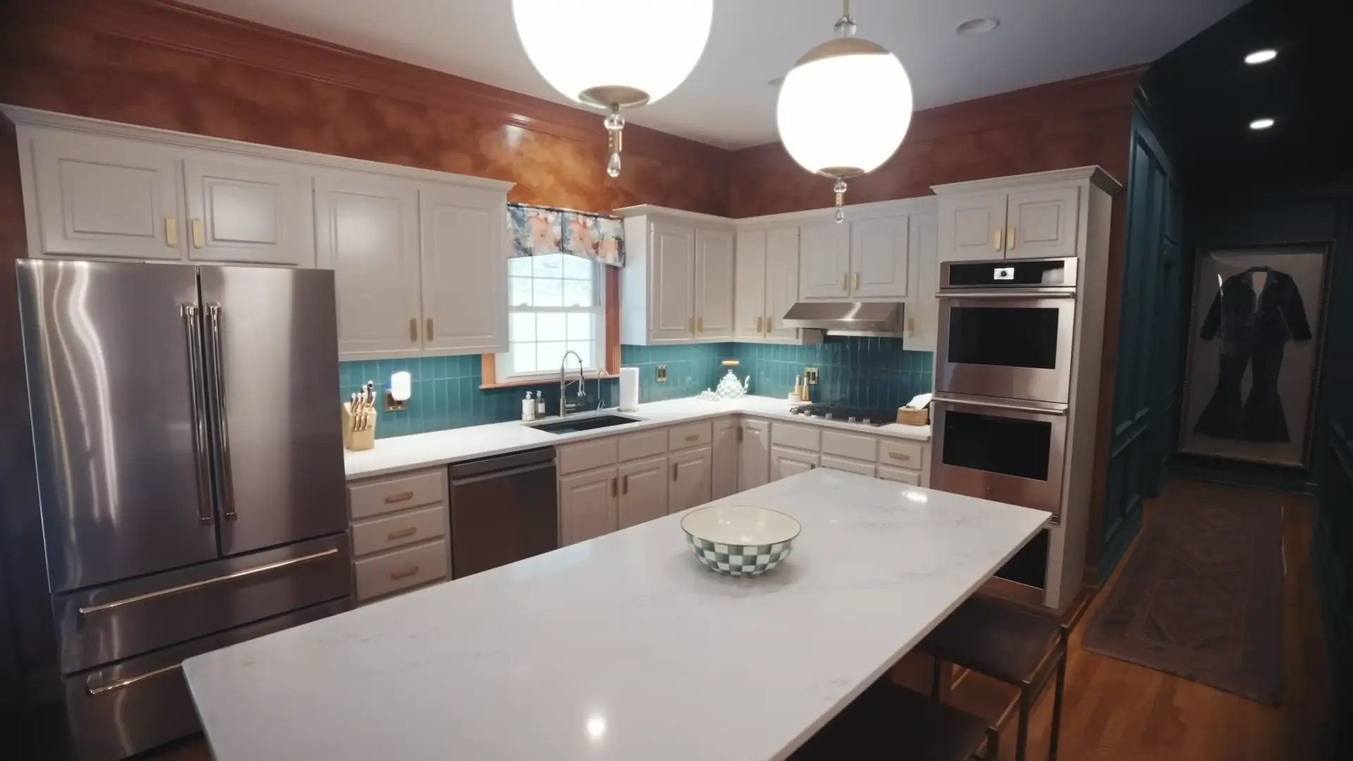 According to her feature with Architectural Digest, Wilson incorporates both high-end and artisanal brands, including MacKenzie-Childs ceramics in the kitchen and the Eden Pendant by Capital Lighting. This pairing of mainstream retail and boutique craftsmanship reflects Western eclecticism at its best.