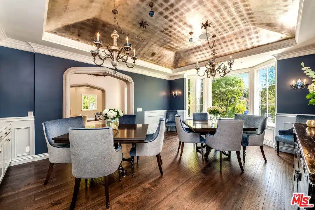 The estate spans approximately 10,000 to 13,000 square feet, with some market estimates placing similar properties well beyond that range. Homes in this enclave routinely exceed the homeowners association’s 5,000-square-foot minimum requirement. The Johnson residence reportedly includes seven to eight bedrooms and multiple formal and informal living areas designed for both family use and large-scale entertaining.