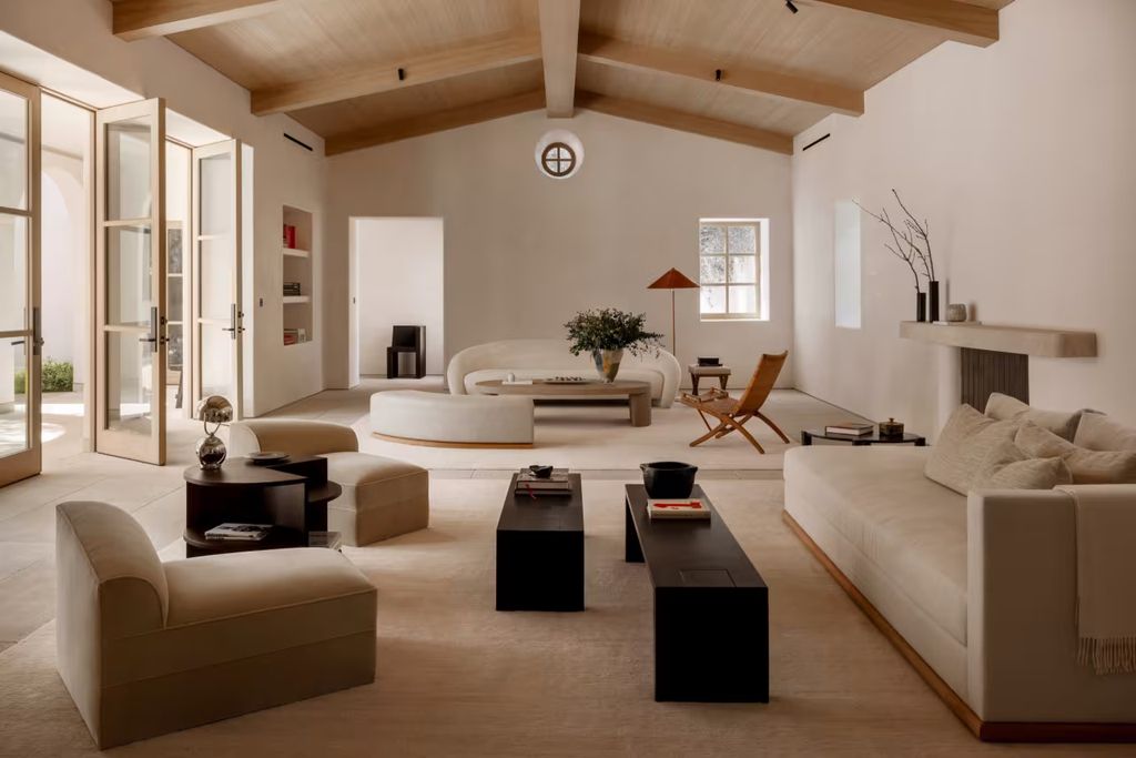 The Ryan Seacrest mansion is rooted in a 1928 Spanish-style structure, but the renovation by Serge Azria brought it firmly into the present. The approach was not to strip the original character but to honor it with restraint. The interior palette relies on simple wood finishes and off-white surfaces, letting the architectural lines carry the visual weight.