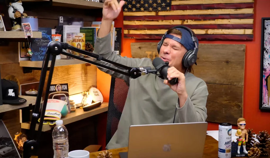 The Theo Von podcast studio has evolved a lot over the years, moving from apartments and rented offices to a full-on professional production setup. What hasn’t changed is the vibe. The show still feels intimate, loose, and slightly unhinged, even though the operation behind it is now very polished.