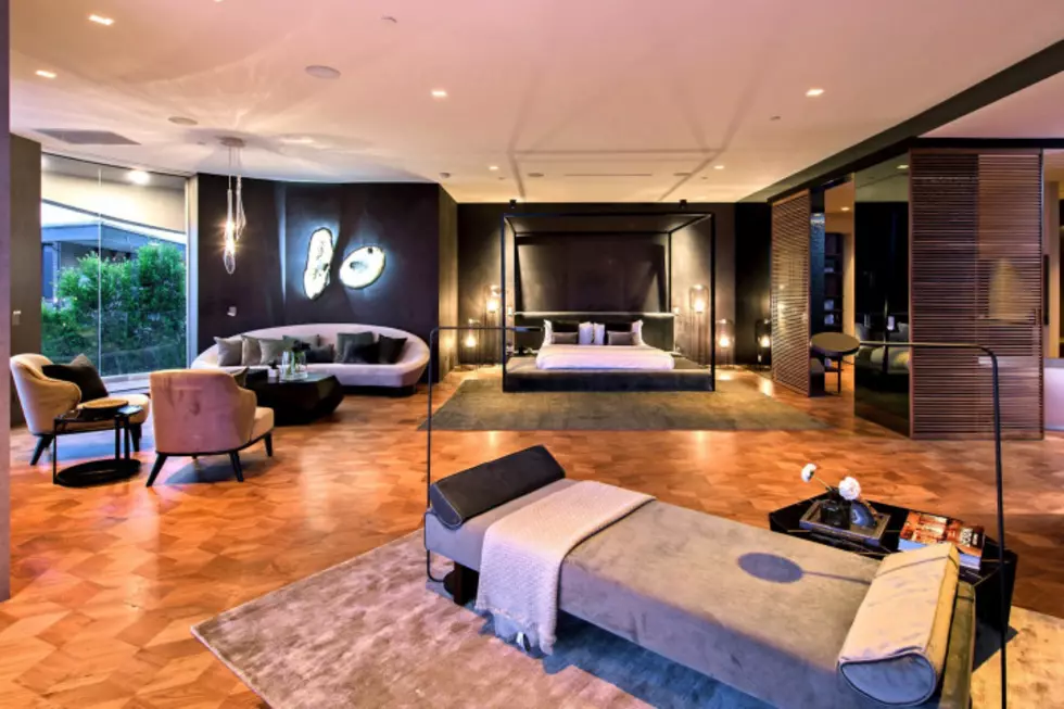 The home was designed by de Loren & Associates, a Los Angeles–based firm known for high-end contemporary architecture.