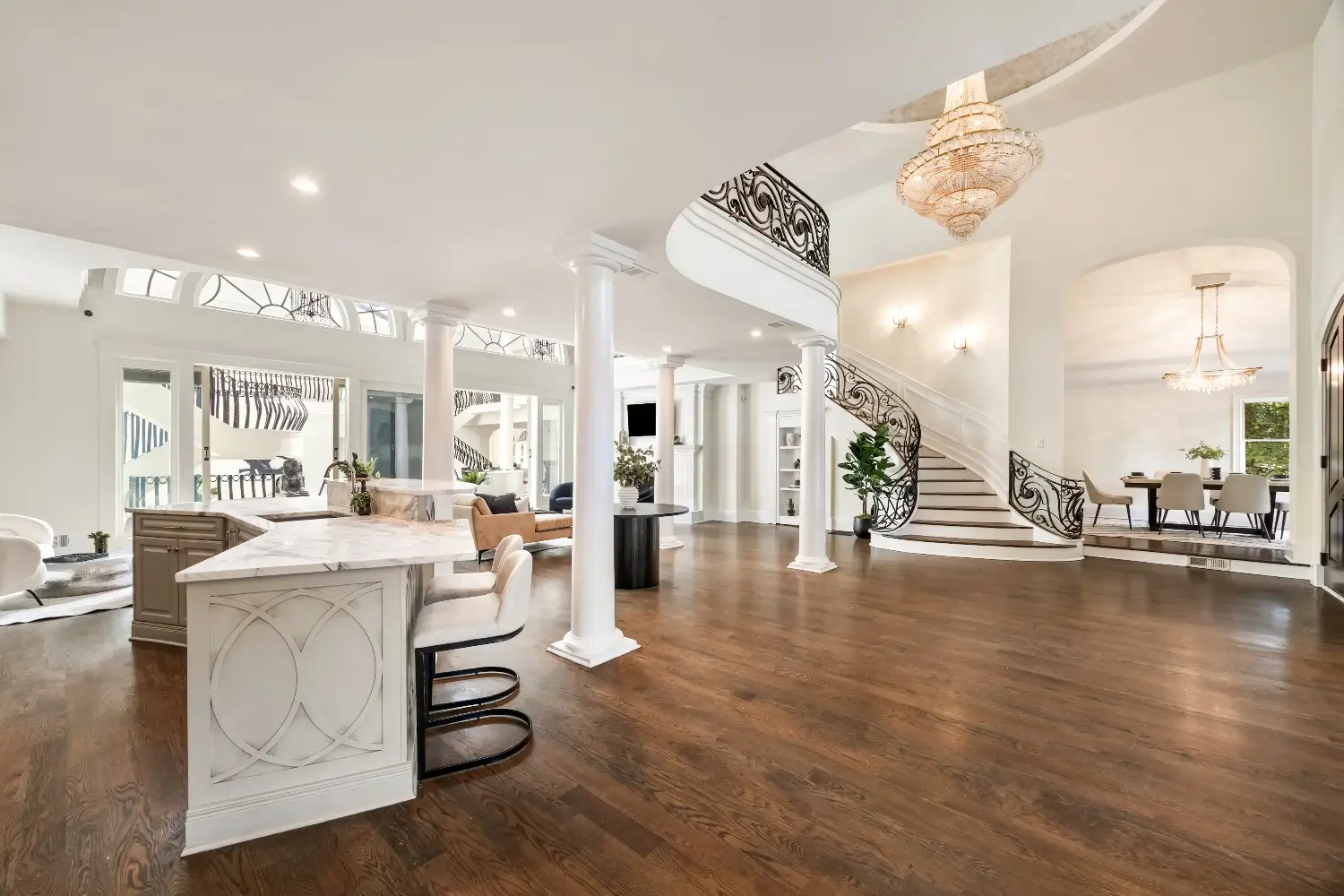 These features position the home as an entertainment-focused estate. The layout prioritizes visual impact and hosting over traditional residential functionality.